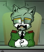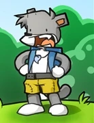 Leo is a flaming idiot and a born retard, who somehow manages to get by in society without ending up in a mental institution. Despite this, he does sometimes show signs of deeper intellegence, or at least some common sense. He is extremely gulliable, and often falls prey to the schemes of the other characters, from Johnny Evilguy's scams (such as the 8 monkey paws Leo bought from him) to the insane ramblings of the drunk Dr. Hobo. He even believes in chain mail (However in this case the chain mail really was telling the truth), and was tricked by Pantsman into becoming his sidekick (or more rather, his personal costumed butler) and helps fight crime (or more likely, playing pranks on the Justice Squad). Leo has also developed a taste for killing other living things such as electrifying orphans, burning sims, and vivasecting Winnie the Pooh. He seems to have gotten more sympathetic since The Perfect Gift, only time will tell if this is just temporary though. However it seems Leo and Aeris are now able to make simple conversations without Aeris raising her fist, even in the more recent comics.